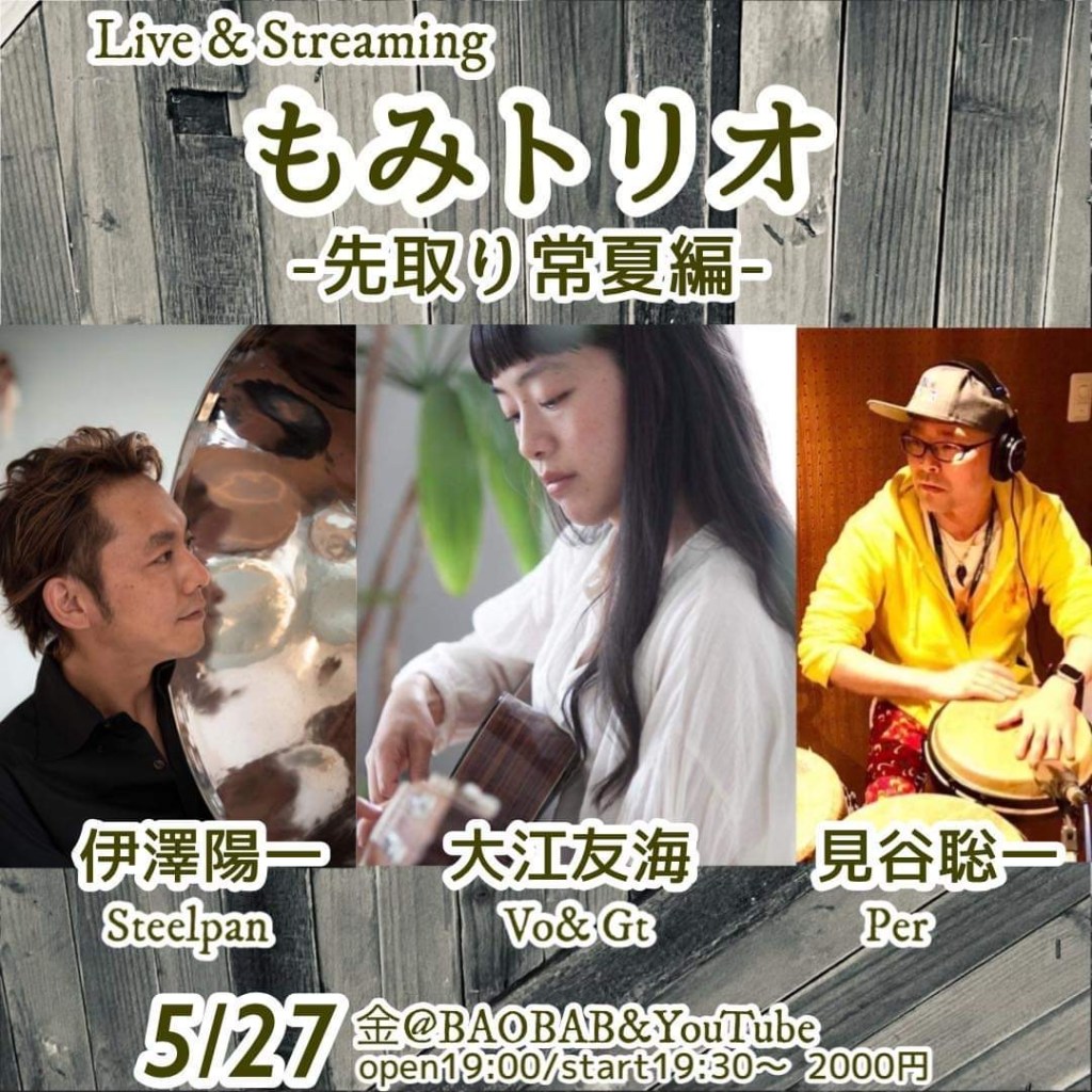 出演|steelpan伊澤陽一, percussion見谷聡一, vo>大江友海