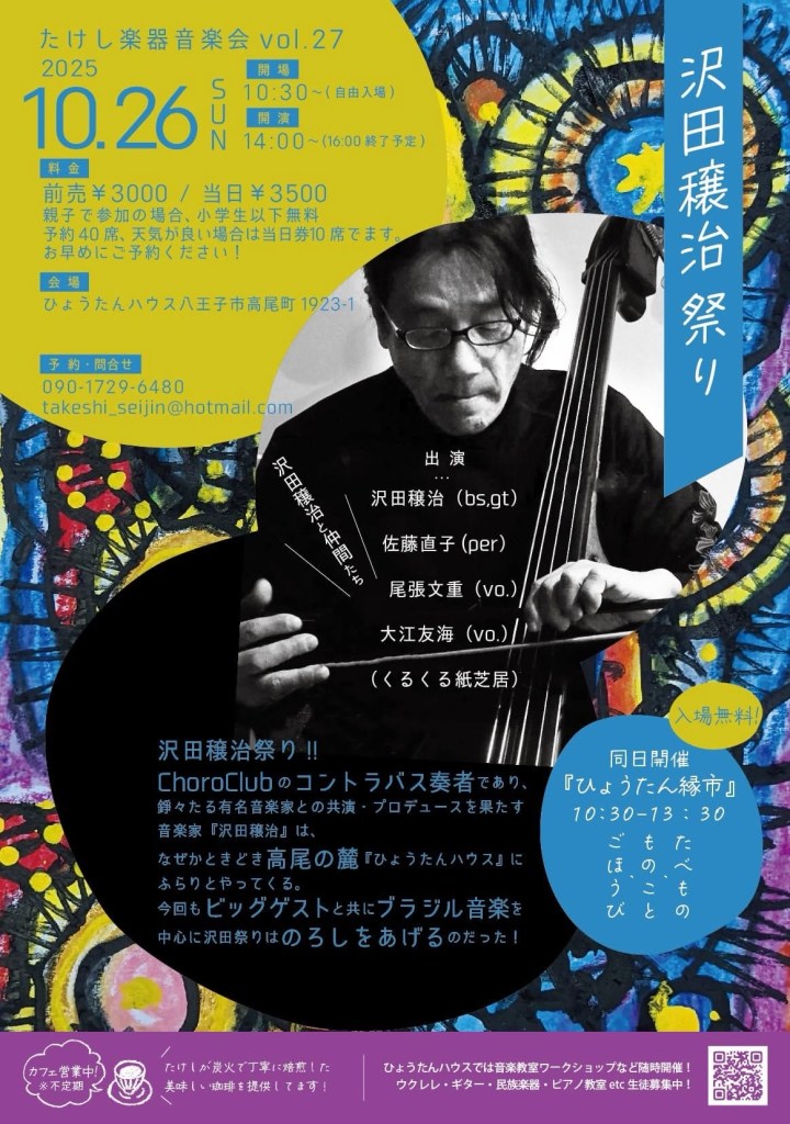 ChoroClubのコントラバス奏者であり、錚々たる有名音楽家との共演・プロデュースを果たす音楽家『沢田穣治』は、なぜかときどき高尾の麓『ひょうたんハウス』にふらりとやってくる。